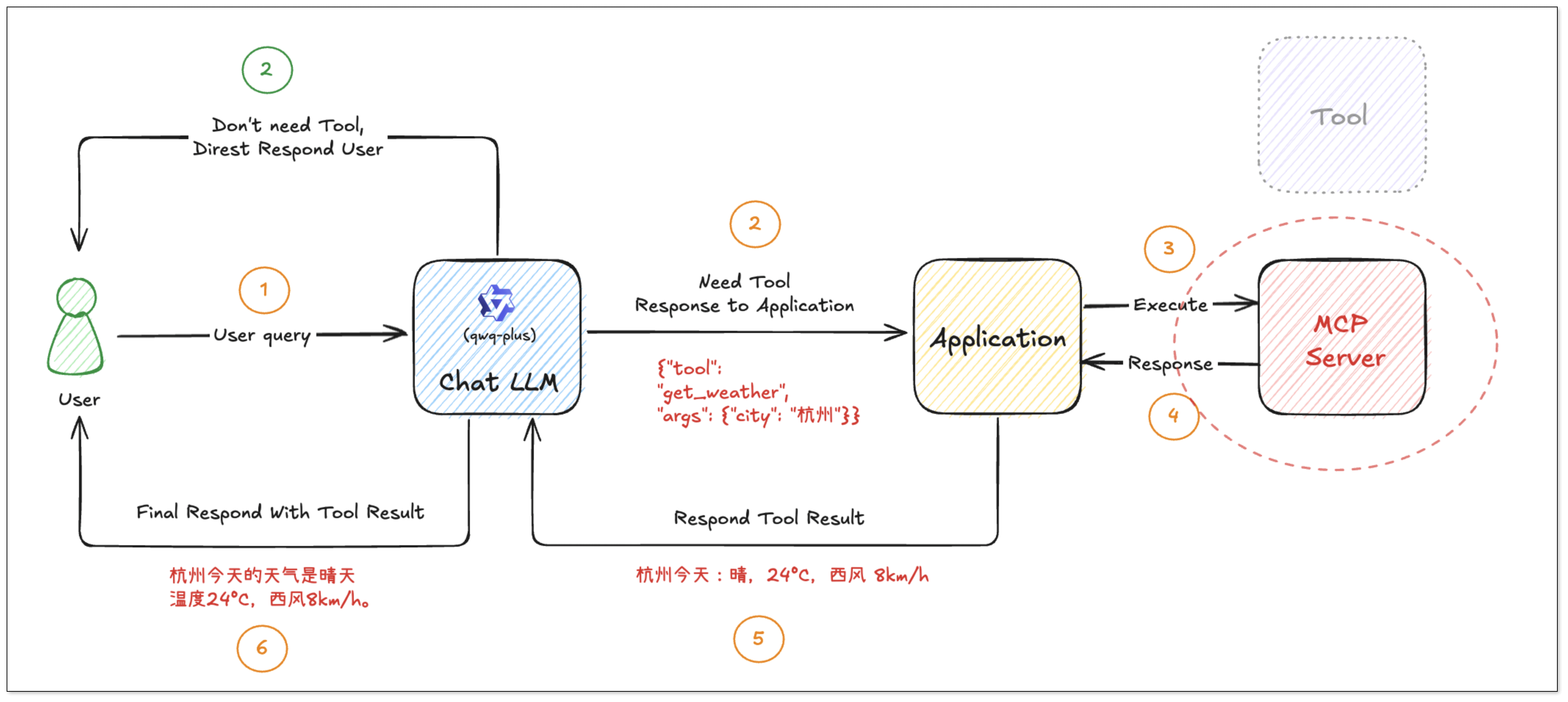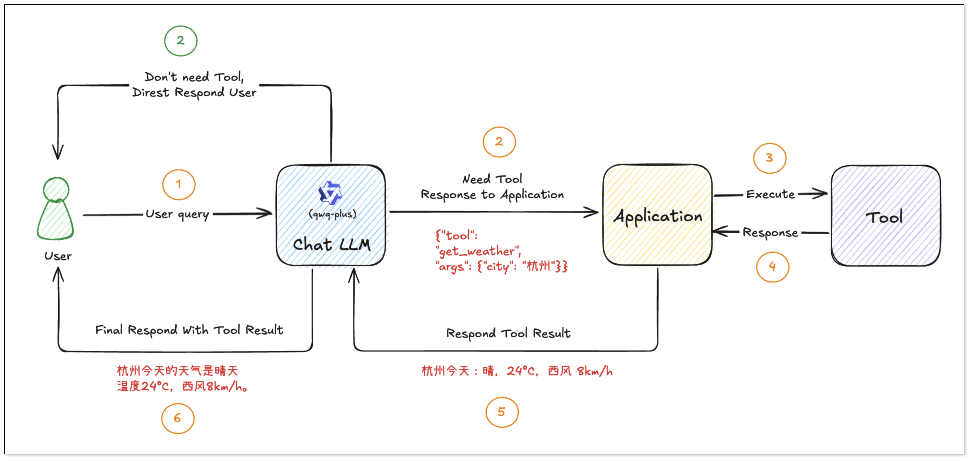 - 执行与结果整合:将调用请求交由应用程序(或外部系统)执行,接收执行返回的结果,并利用该结果来组织和生成最终的回复。
