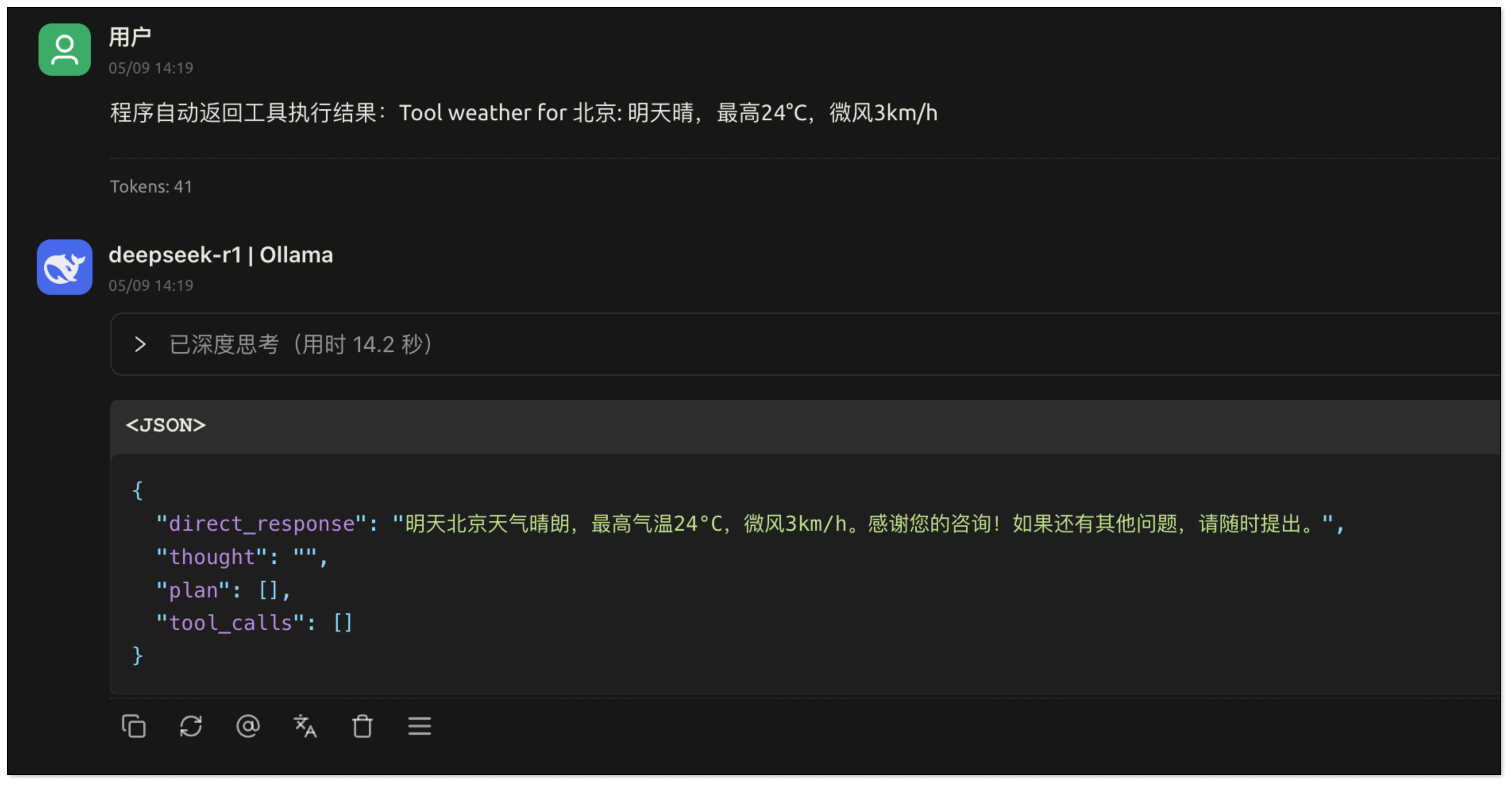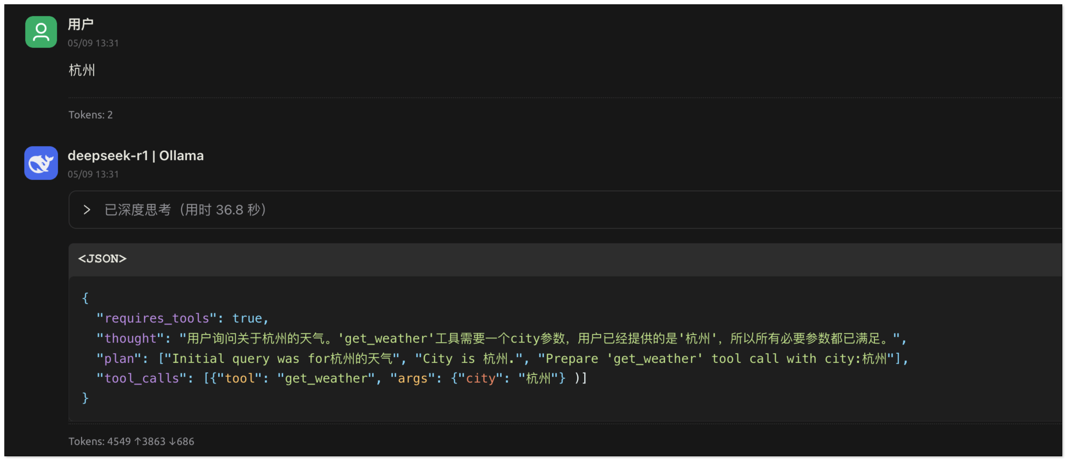 - 参数提取与格式化:自动从用户输入中提取执行工具所需的参数,并以结构化的 JSON 形式生成调用指令。